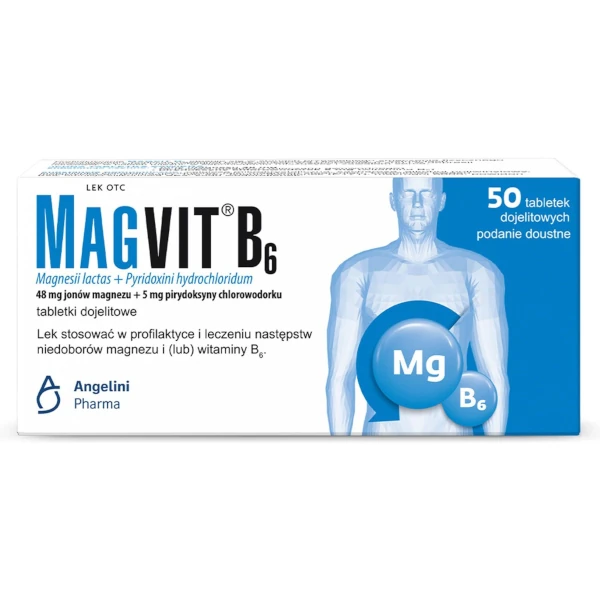 Magvit B6 to lek z magnezem w postaci mleczanu magnezu (magnez organiczny) i witaminy B6. Tabletki dojelitowe chronią zawartość przed działaniem kwasu żołądkowego, zapewniając najlepsze wchłanianie magnezu w jelicie cienkim.