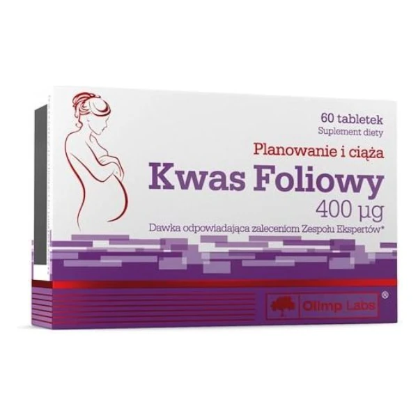 Olimp Kwas Foliowy to suplement diety w formie tabletek, który w swoim składzie zawiera kwas foliowy. Produkt przeznaczony dla dorosłych kobiet planujących ciążę, w ciąży i karmiących piersią.